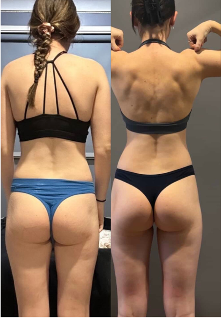 Here is a photo of how I got Megan to put on 5kg of lean muscle without gainining fat, she got stronger and is now feeling Confident.