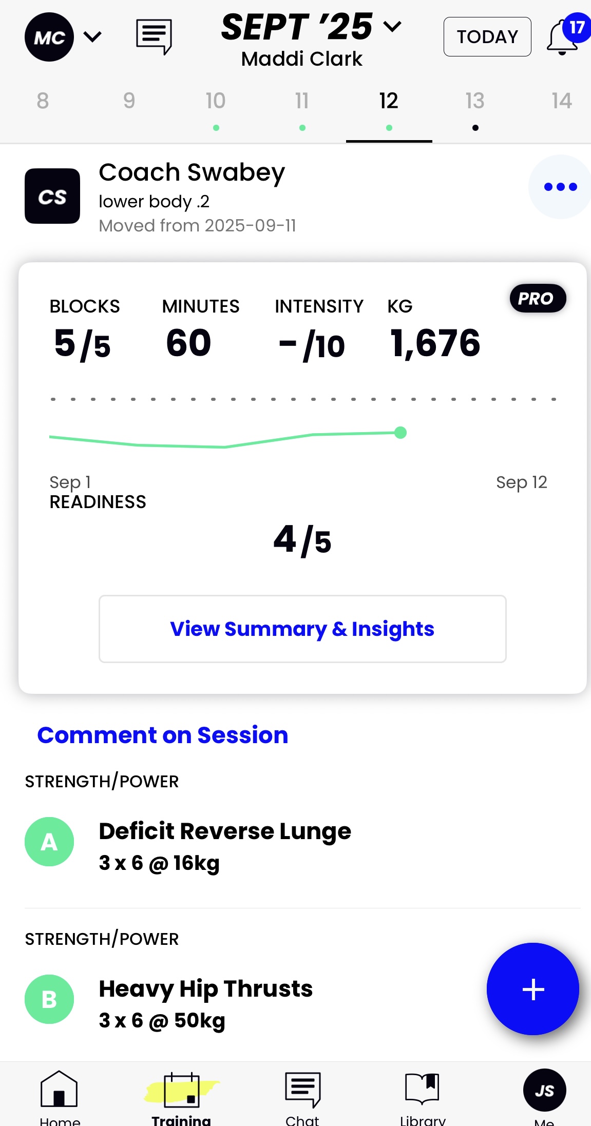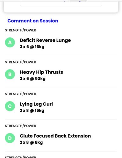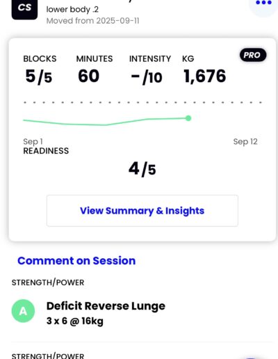- Progressive Strength Training: 4 structured workouts per week (2 lower body, 2 upper body + core).