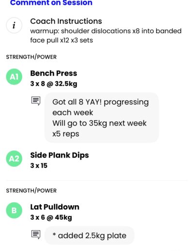 - Comment section to include feedback and reminders for your coach and future self.
